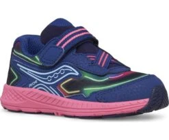 A mesh and leather upper makes this running sneaker as breathable as it is durable. Its secure lace-closure keeps it in place through active playtimes and after-school practices, and its odor-fighting lining leaves feet feeling fresh once they’ve returned home.